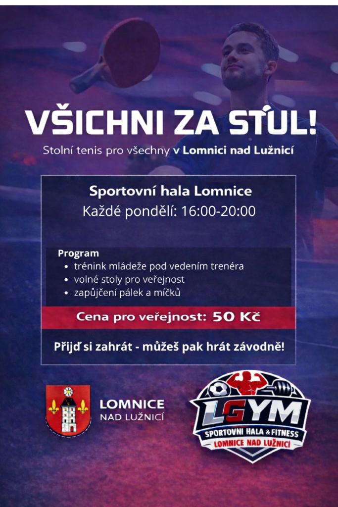 Všichni za stůl". Trénujeme, ale zároveň zveme všechny zájemce z veřejnosti. Volné stoly jsou připravené, vybavení zajistíme. Přijďte si ping-pong vyzkoušet.
